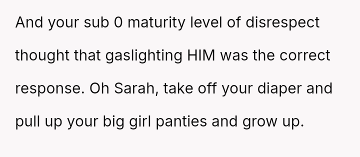 Now, he is being accused by Sarah of being dramatic and embarra*sing her by leaving, leading him to question if he was in the wrong.
