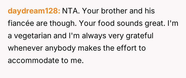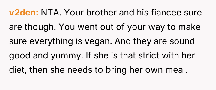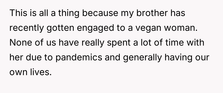 AITA for not accommodating my brother's vegan fiancee?