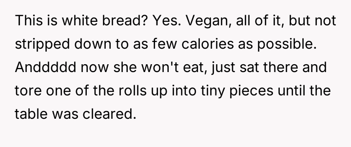 The central conflict arose when the fiancée rejected the prepared food based on perceived quality or health aspects (like using white bread or olive oil) rather than strict vegan compliance, leading to her refusing to eat and the OP feeling unfairly criticized for the perceived over-accommodation attempt.