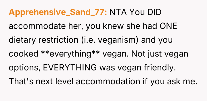 The Original Poster (OP) made a significant effort to accommodate their brother's vegan fiancée by preparing an entirely vegan meal for a family dinner, despite their own dietary habits.