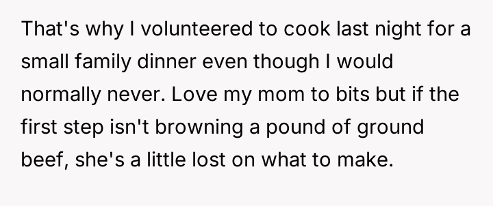 A reluctant cook, torn between comfort and challenge, stepped into unfamiliar territory not just to feed, but to connect with a new member of the family whose values didn’t mirror their own.