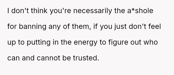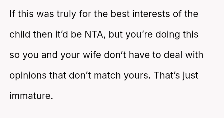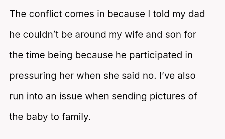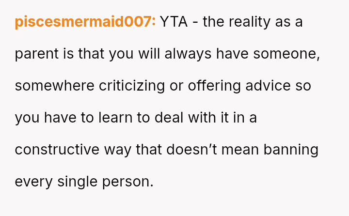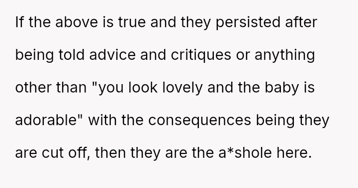 This action created a direct conflict with extended family members who feel their involvement and good intentions regarding the new baby are being unfairly restricted.