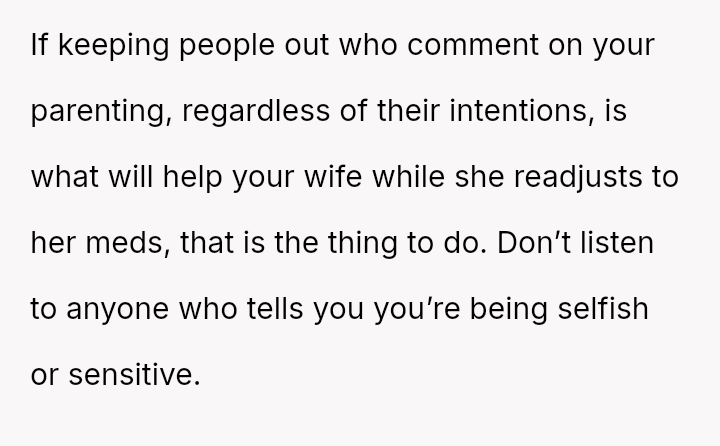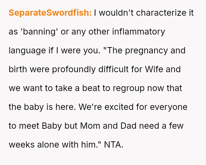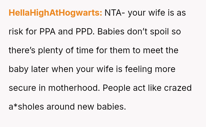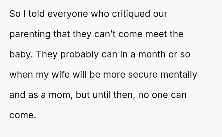Given the wife's fragile mental state and the OP's protective stance, is the decision to ban critical family members from visiting the newborn until the mother is more secure a necessary act of safeguarding, or does it const*tute an overreaction that damages important family relationships based on good intentions?