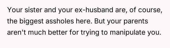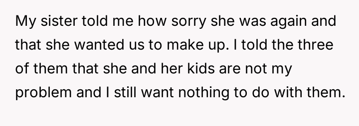 AITA for telling my estranged sister and our parents that she and her kids are not my problem?
