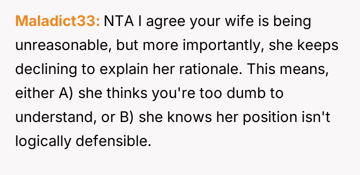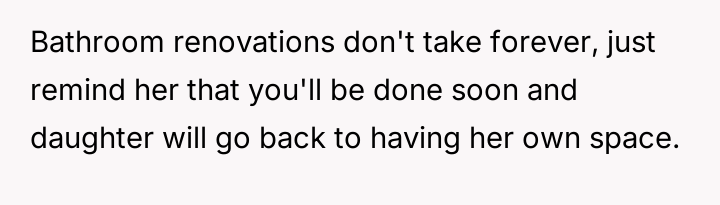 The original poster (OP) is in conflict with his wife over the appropriate use of the home's bathrooms while one is under renovation.