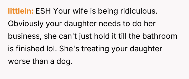 AITA For losing it after my wife wanted my daughter to stop using the bathroom in the house?