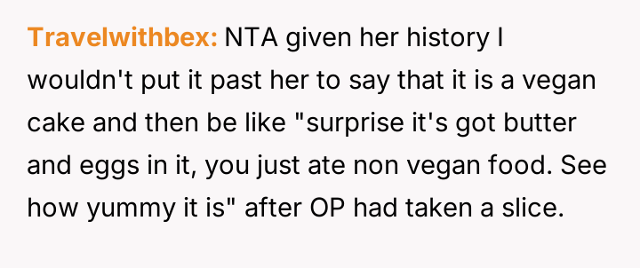 Given that the OP never requested special accommodations, was their refusal of the potentially non-vegan cake, despite Bea's public display, a necessary defense of their boundaries, or did it unfairly overshadow what was intended to be a kind gesture on Bea's birthday?