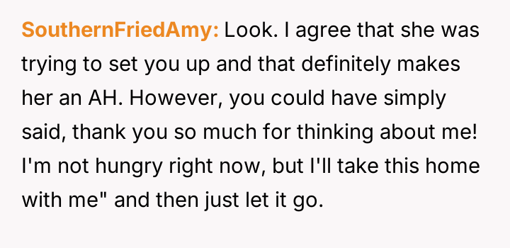 The OP attempted to maintain peace by not drawing attention to their diet, but Bea escalated the situation by deliberately manufacturing an uncomfortable social situation involving food, leading to an emotional outburst when the OP prioritized their ethics over Bea's manufactured feelings.