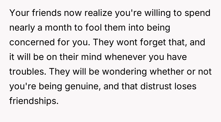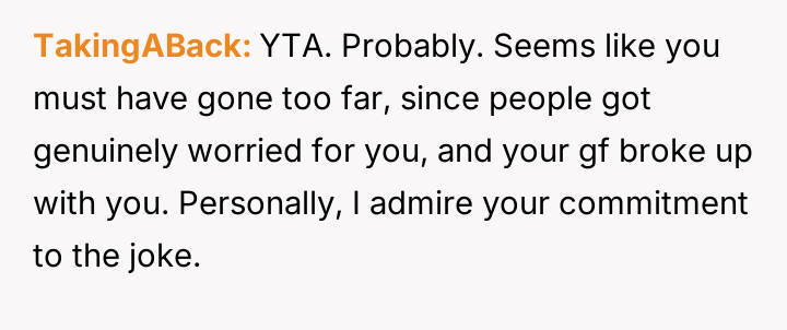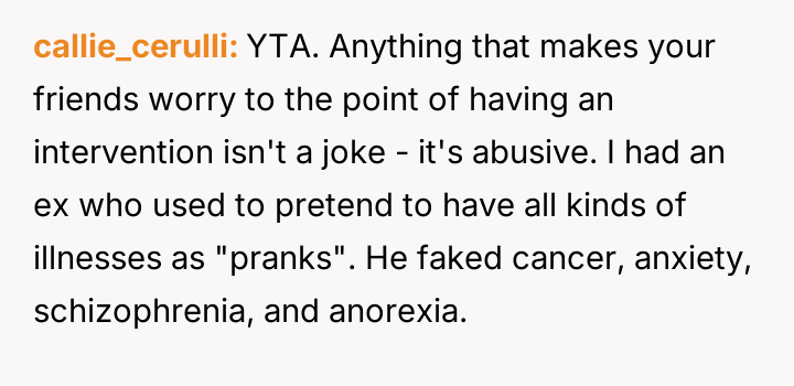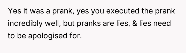 Given the significant negative reactions, including an intervention and a breakup, the core question is whether the duration and depth of deception involved in a prank justify the emotional investment and distress caused to others, or if a joke loses its value when it damages trust?