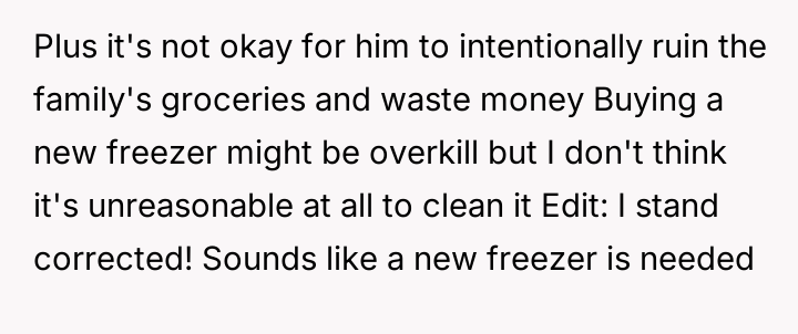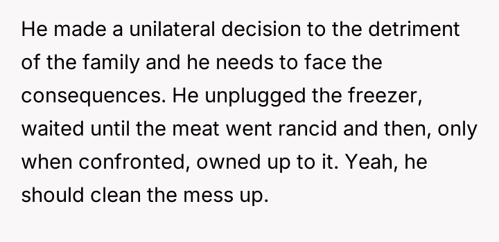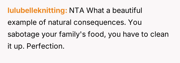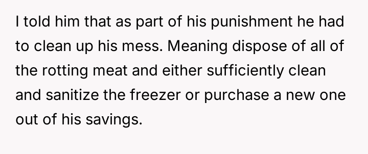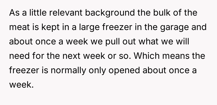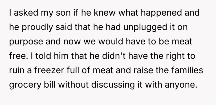 The original poster (OP) is dealing with a significant conflict arising from their son's unilateral and destructive action against the family's established method of food preservation and budgeting.