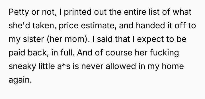AITA for demanding that my niece, or her parents, pay me back for the hundreds of dollars of perfume she stole from me?