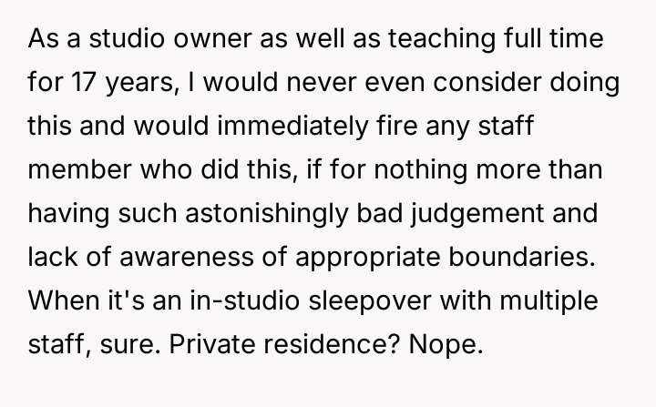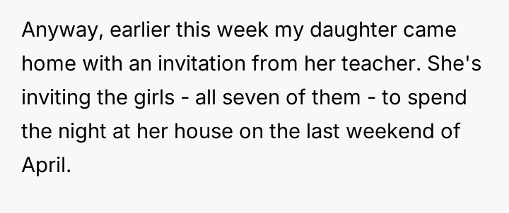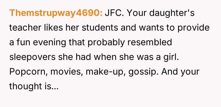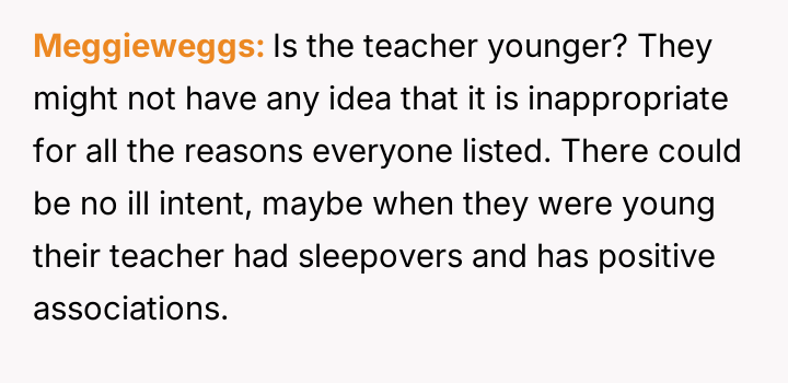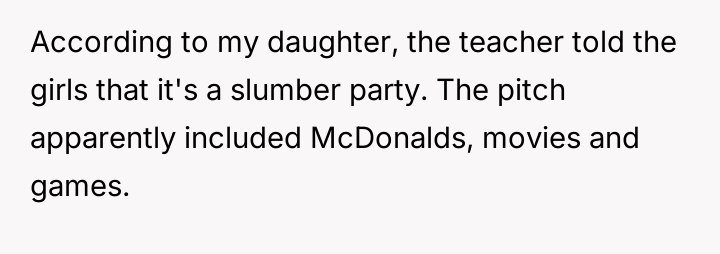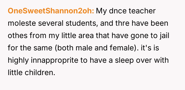 My daughter’s dance teacher invited her to a sleepover at her house. WIBTA for formally complaining?