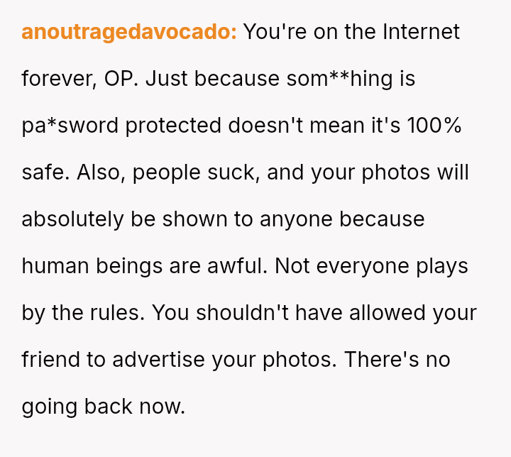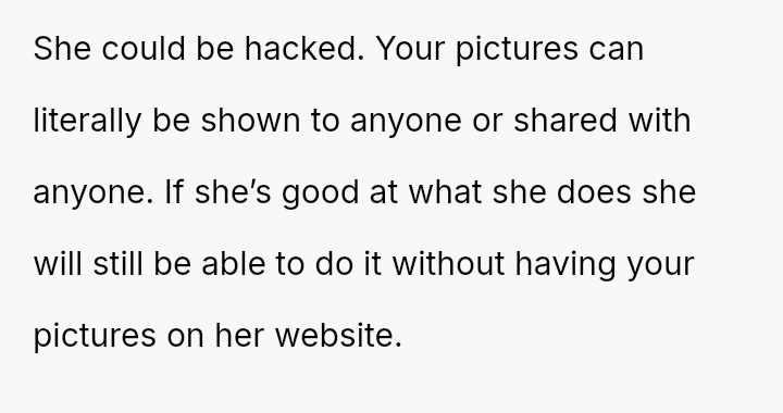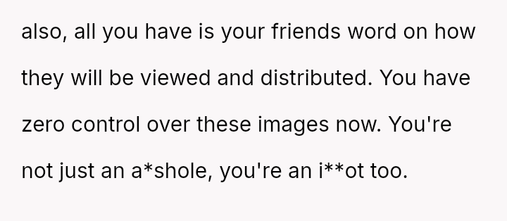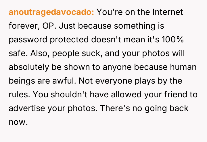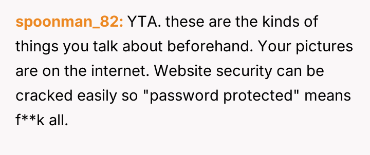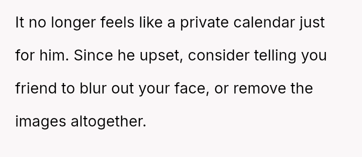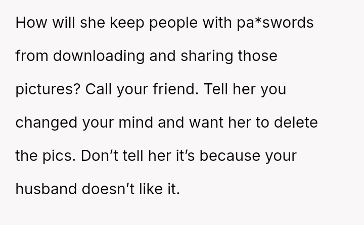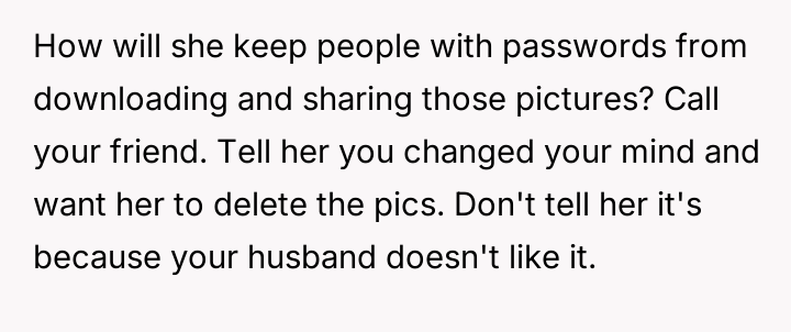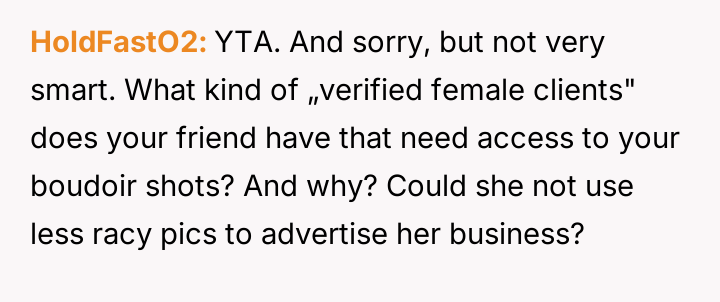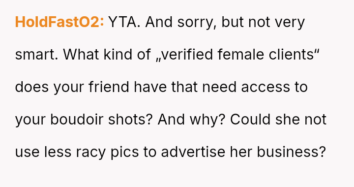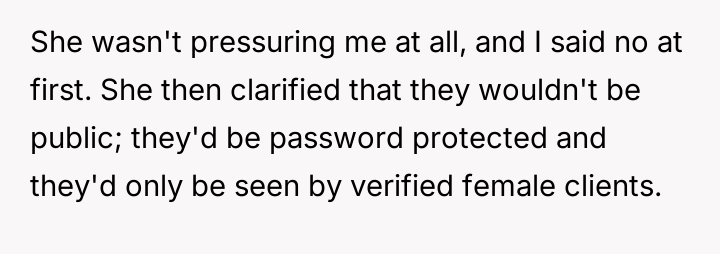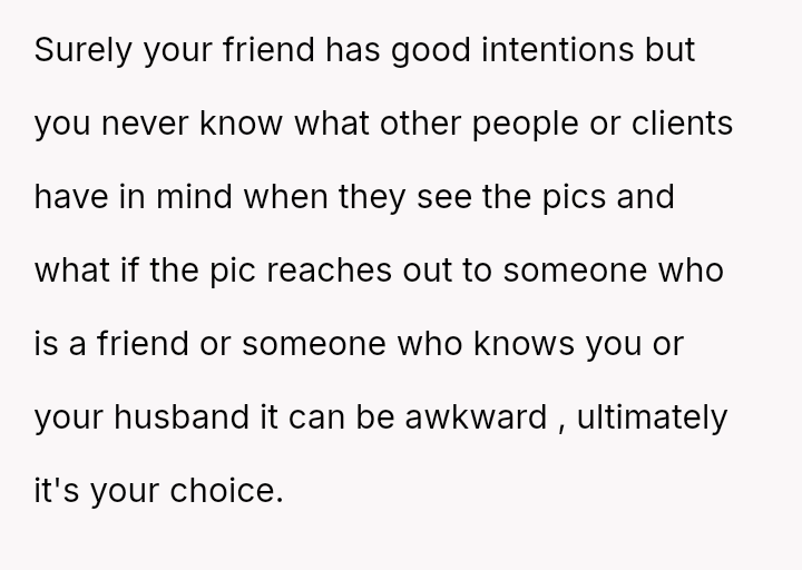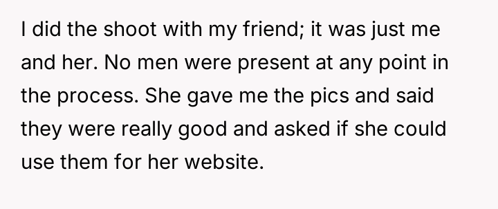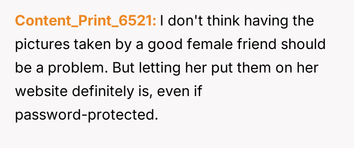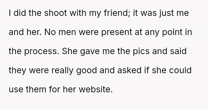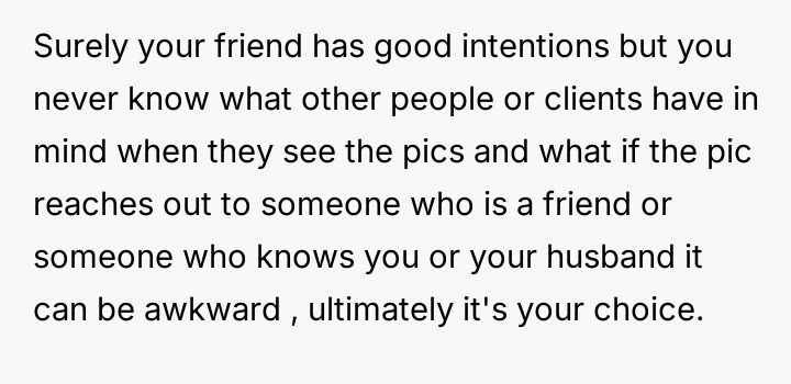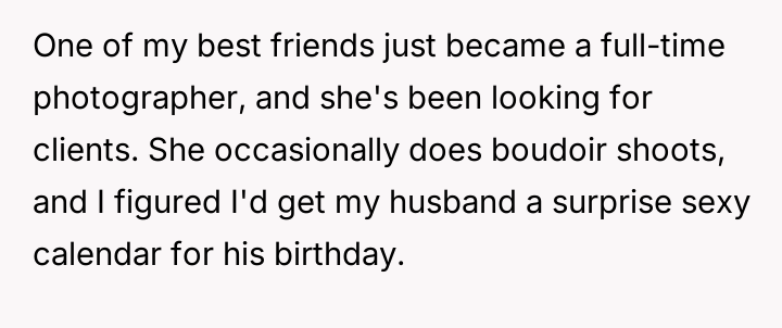 The original poster (OP) acted based on a desire to support a friend's new business and create a special gift for her husband, believing the intimate nature of the photos was contained and private.
