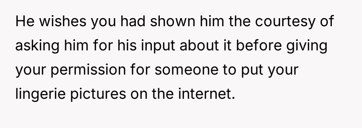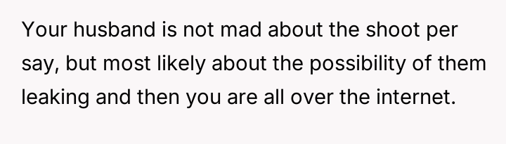 my husband is mad that i did a lingerie photoshoot, aitah?