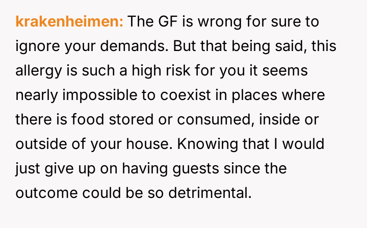 The conflict centers on the fiancé's brother's (BIL) girlfriend, who has previously violated this rule twice, resulting in the OP having an allergic reaction requiring emergency care once. After the second incident, she was kicked out, and the BIL has been visiting alone since.