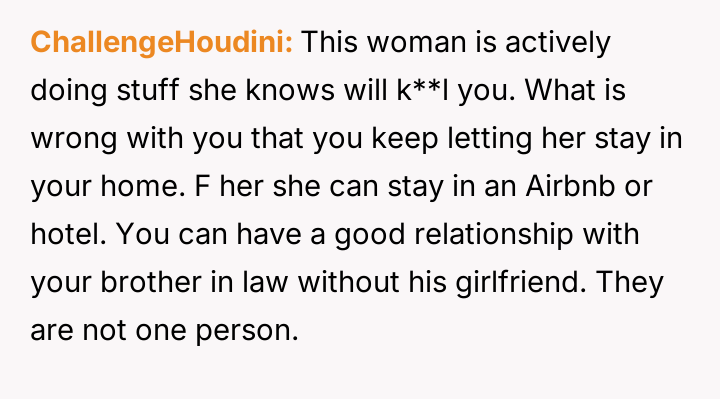 The core conflict lies between the OP's fundamental need for physical safety within their own home and the guest's expectation of privacy and trust.