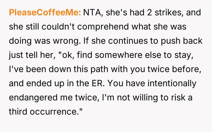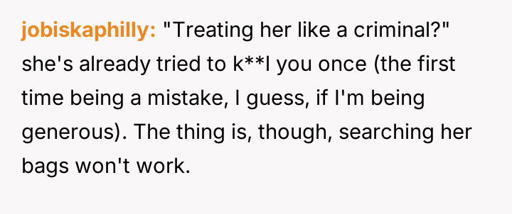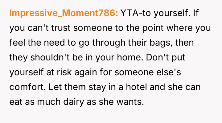The question is whether demanding to search the guest's luggage is a reasonable and necessary boundary to enforce for life-threatening medical safety, or if it constitutes an unreasonable, invasive, and punitive measure against someone who has previously proven untrustworthy.
