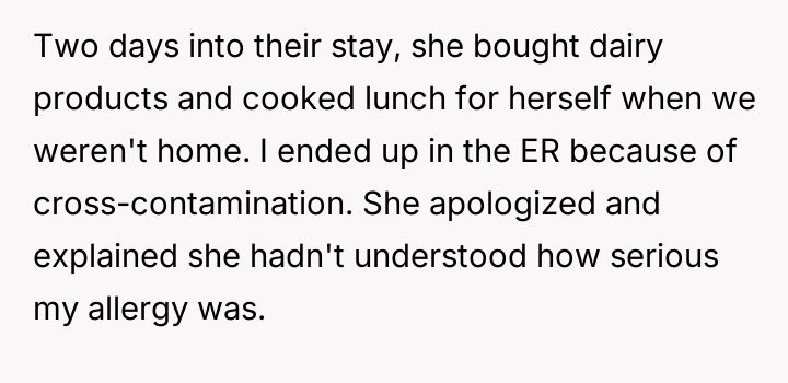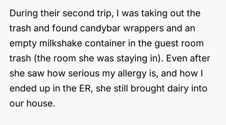 The OP finds themselves in a difficult position, balancing the absolute necessity of maintaining a safe, dairy-free environment to protect their life against the social pressure to accommodate a guest who has repeatedly shown disregard for that safety requirement.