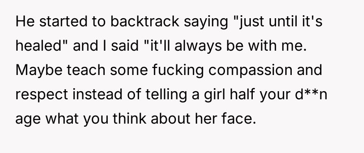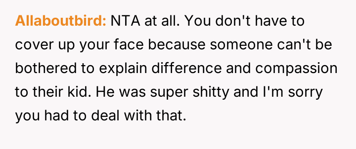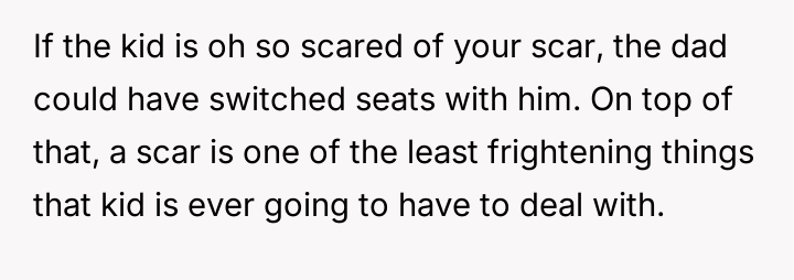 AITA for leaving significant facial scarring uncovered on a plane and being confrontational when a father asked me to cover it because it was scaring his son?