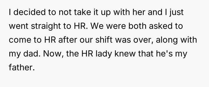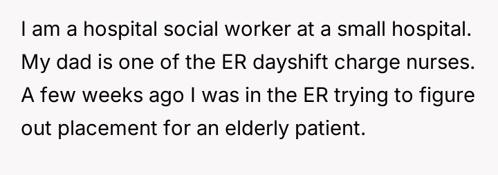 The story involves a 27-year-old female hospital social worker (OP) and her 51-year-old father, who works as a charge nurse at the same small hospital.