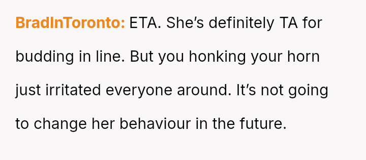 The honking horn became a battle cry, a refusal to let rudeness slide unchallenged in a world that often rewards selfishness.