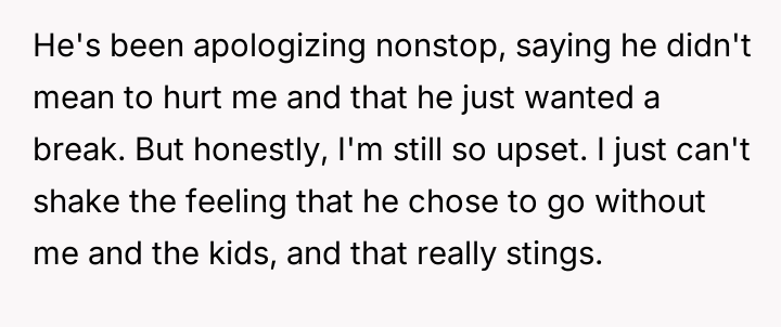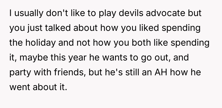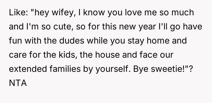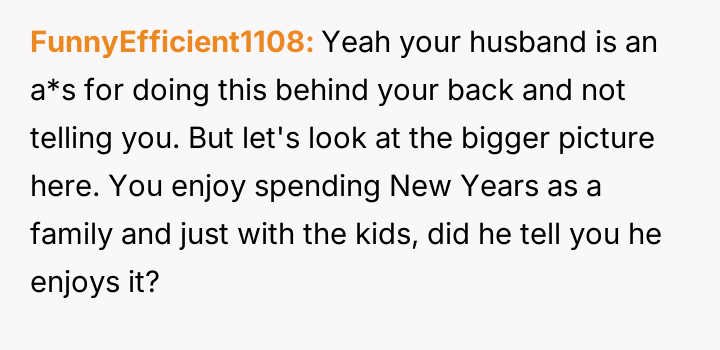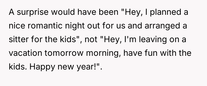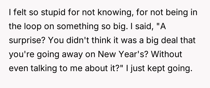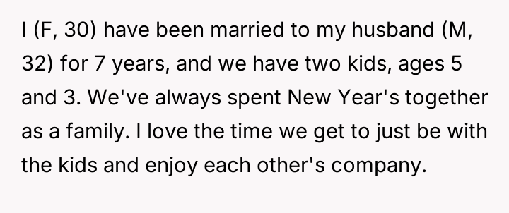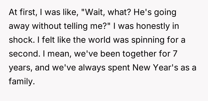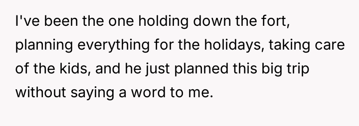 AITA for going off at my husband after finding out he planned to spend New Year's without me and the kids?