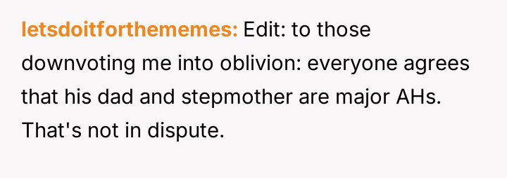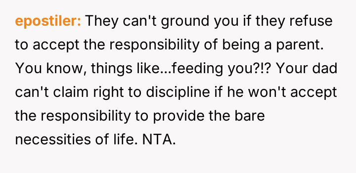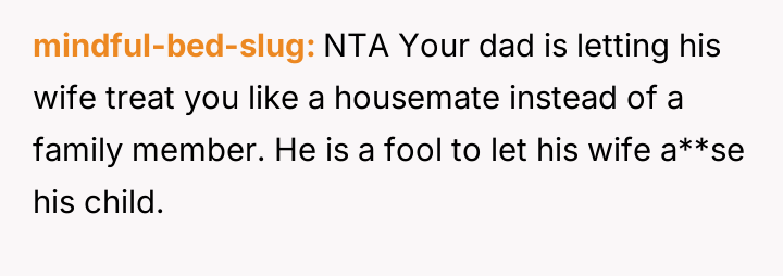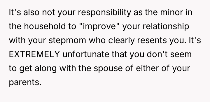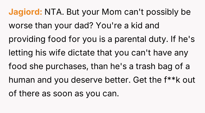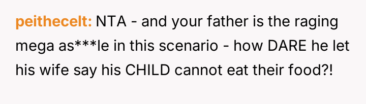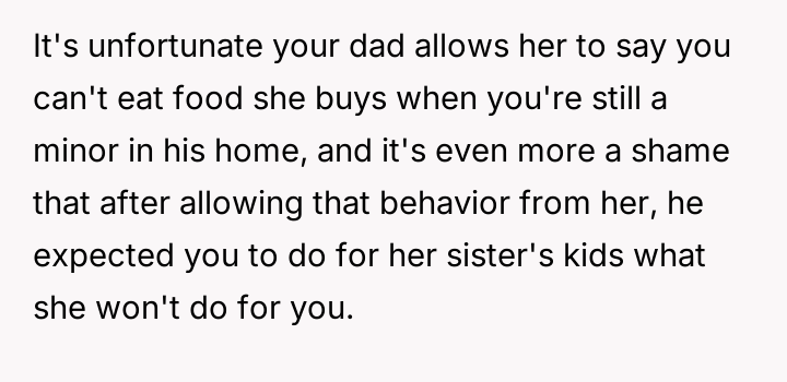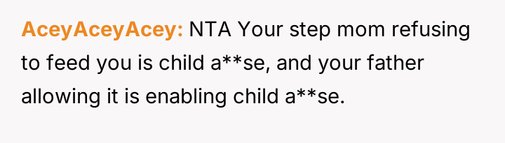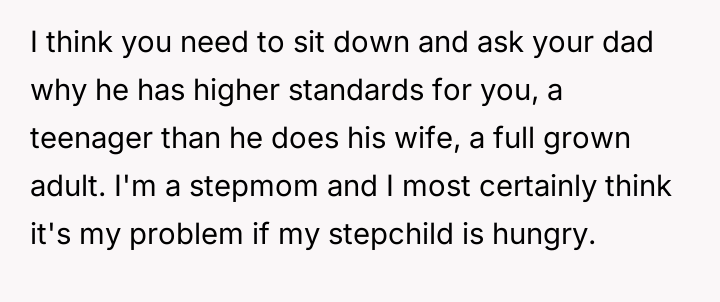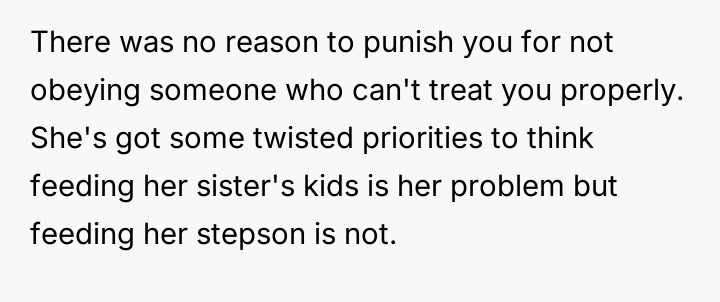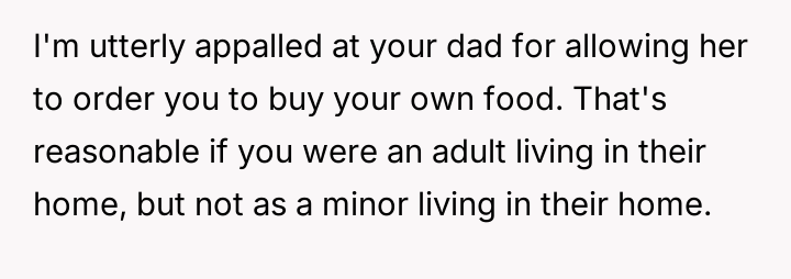 The original poster (OP) clearly feels unwelcome and is reacting strongly against the stepmother's continuous demands, leading to escalating conflict, particularly around basic needs like food.