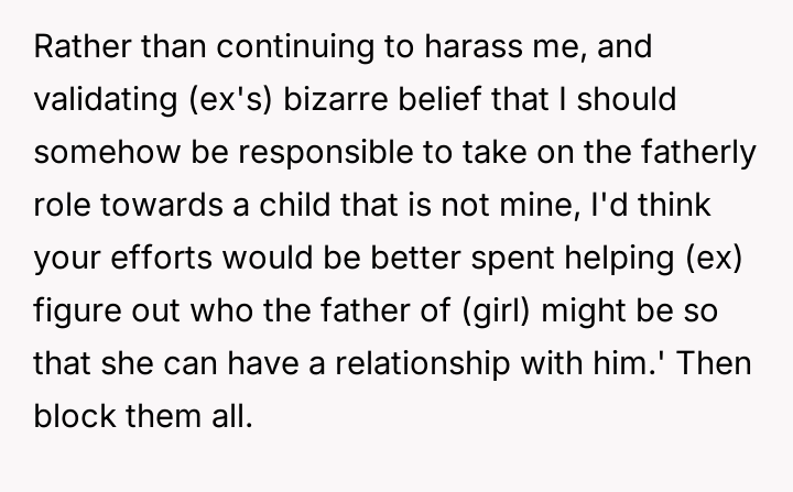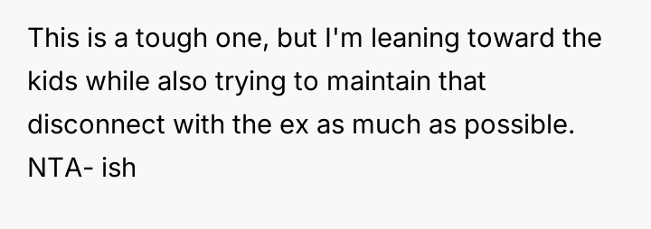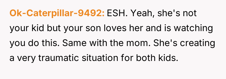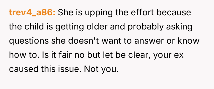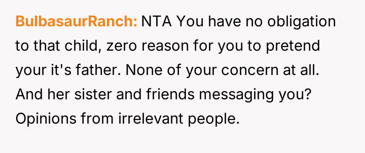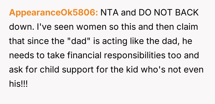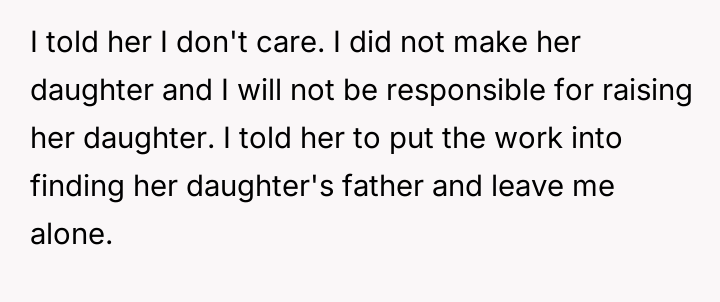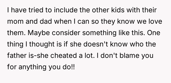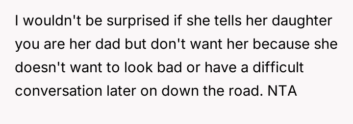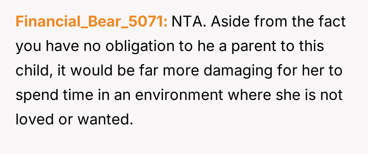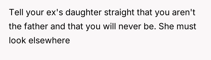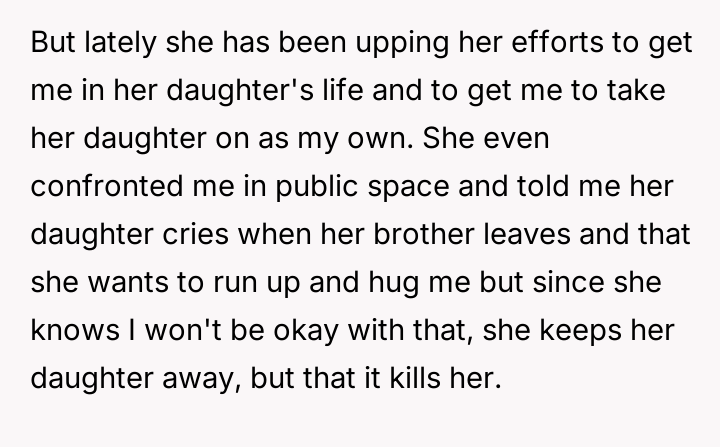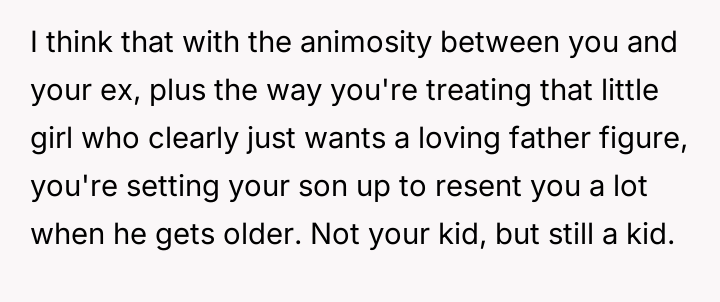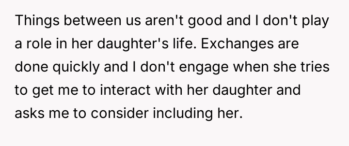 The issue escalated when the ex-partner began pressuring him publicly to bond with the non-biological daughter, leading to confrontations and accusations from her family, leaving the user to question if his firm stance is justified.