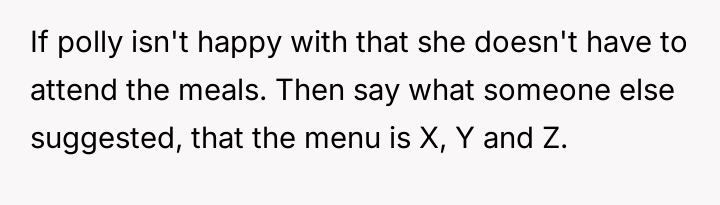 The central question for debate is whether the OP should prioritize their budget and the experience of the other nine guests by serving a standard meal, risking confrontation with Melissa and Polly, or if they should absorb the significant financial cost to ensure Melissa is fully satisfied.