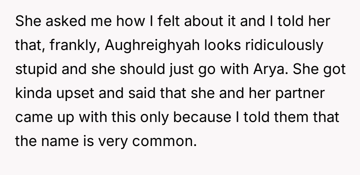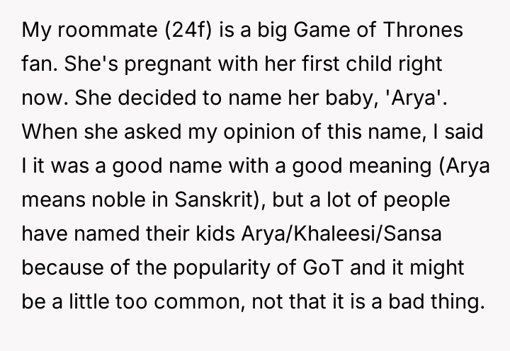 AITA for telling my roommate that the name she chose for her baby is ‘ridiculously stupid’?