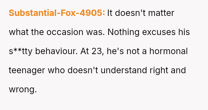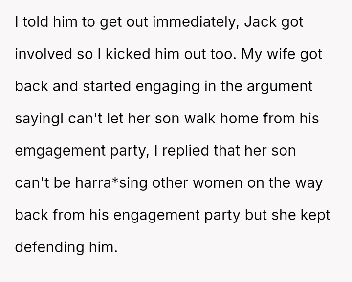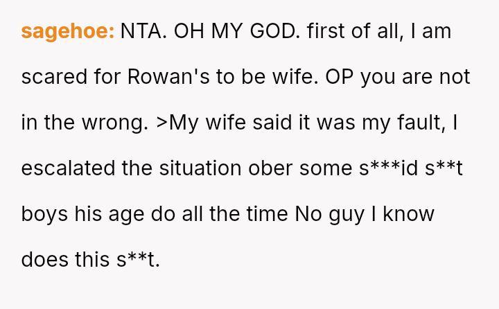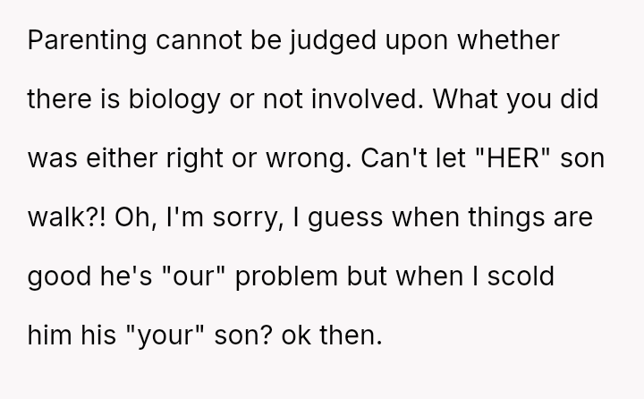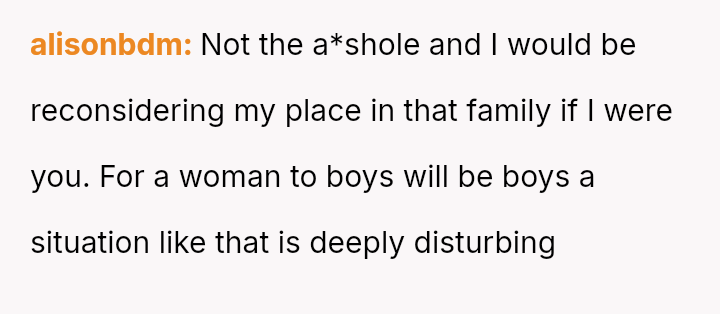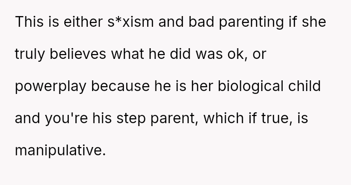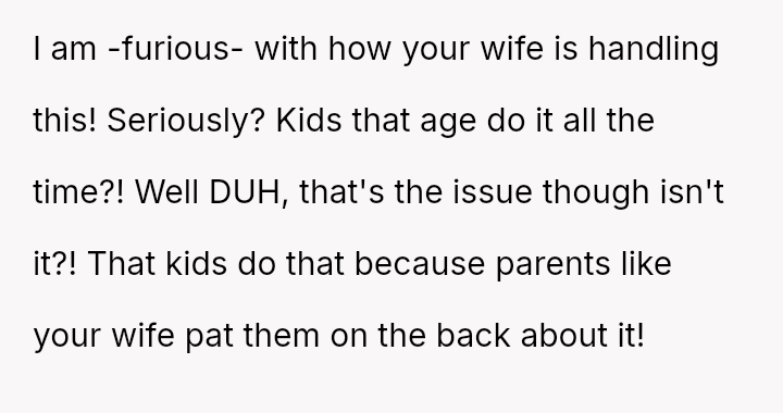 The wife further complicated this by siding with her son, prioritizing his comfort over addressing the inappropriate actions.
