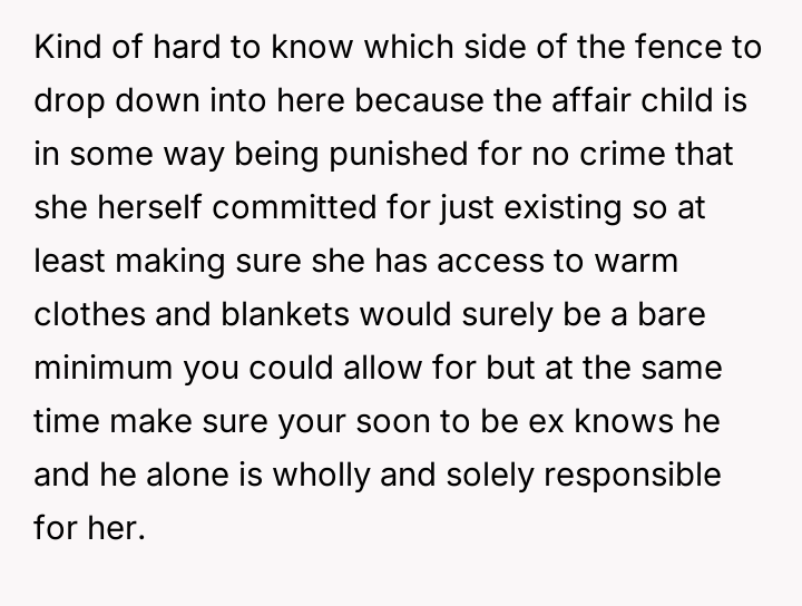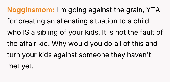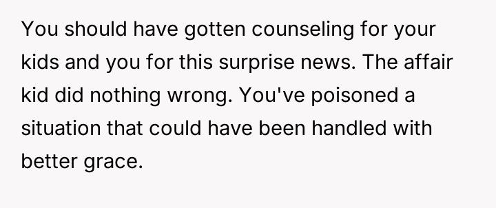 Should immediate emotional and logistical accommodation for the affair child supersede the established security and comfort of the OP's existing children?