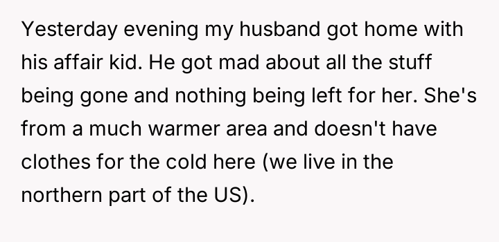 AITA for moving all my daughter’s belongings to my parents house and leaving nothing for my husband’s affair kid?