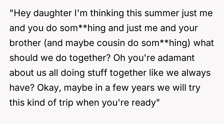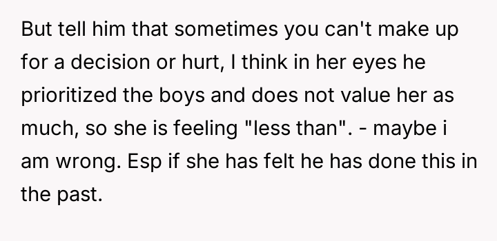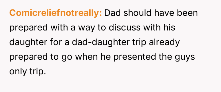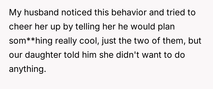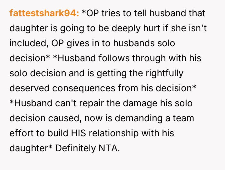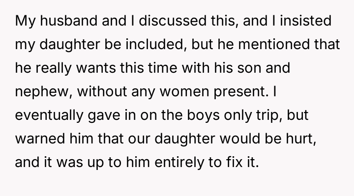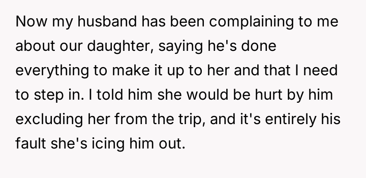 AITA for not helping my husband repair his relationship with our daughter after he excluded her from a "guys only trip"?