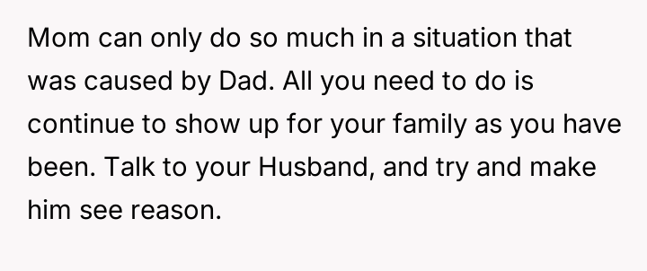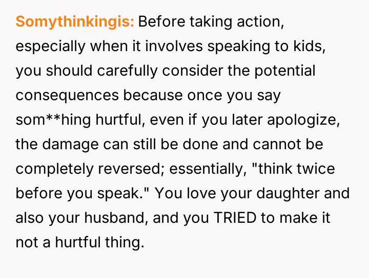 The husband now pressures the OP to intervene and fix the situation, leading to conflict between the parents over who should manage the fallout, posing the central question of parental responsibility in repairing emotional damage caused by a unilateral decision.