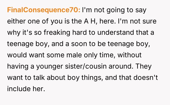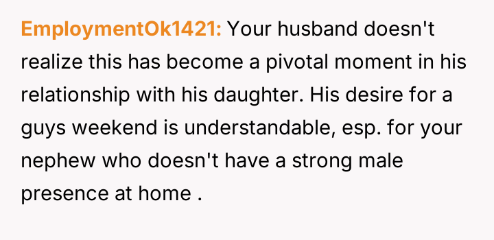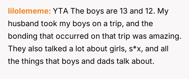 The core issue revolves around a planned summer trip organized by the husband, intended as a "guys only" vacation involving his son (13M) and nephew (12M).