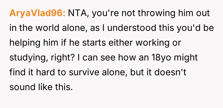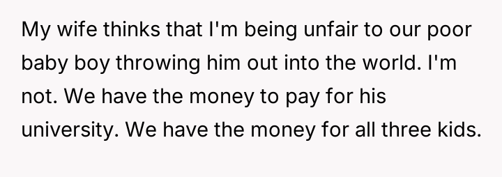 The original poster (OP) feels justified in upholding a strict expectation for his 17-year-old son to choose between university or employment upon turning 18, viewing this as necessary preparation for adulthood, despite his own family's wealth.