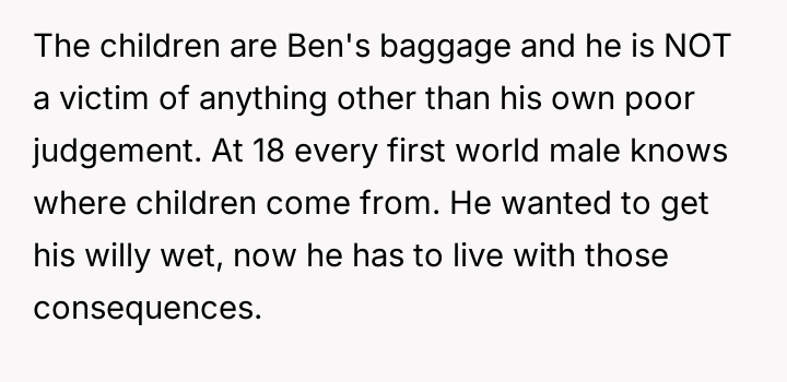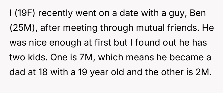 During or shortly after their initial meeting, OP learned that Ben has two young children, aged 7 and 2, meaning he became a father at a very young age.