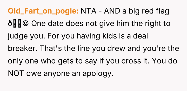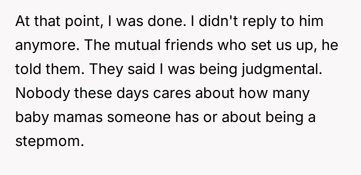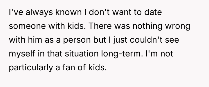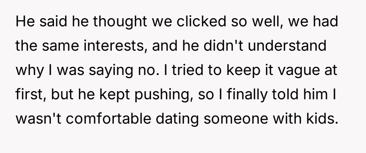 OP, stating clearly that she is not interested in dating someone with children and does not wish to be a stepmother, politely declined Ben's request for a second date.
