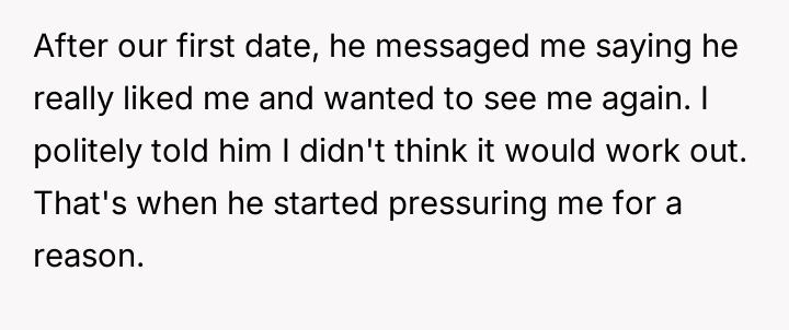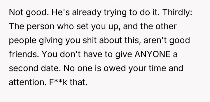 The Original Poster (OP), a 19-year-old woman, went on a first date with Ben (25M), whom she met through mutual friends.