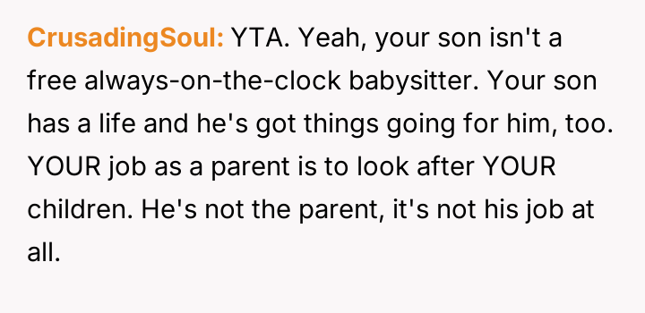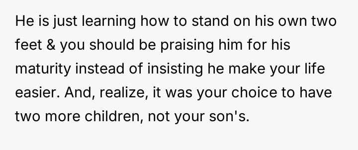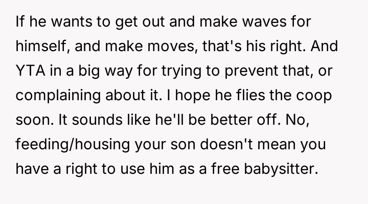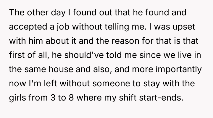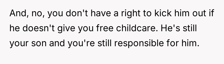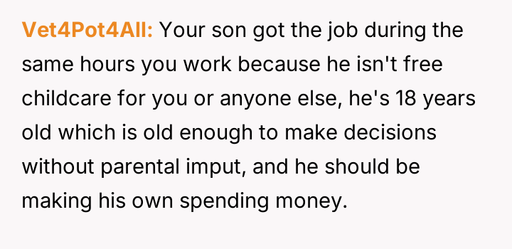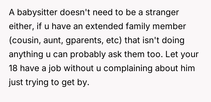 The original poster (OP) is struggling with the sudden change in her established childcare routine after her 18-year-old son accepted a job without prior discussion.