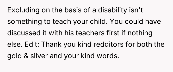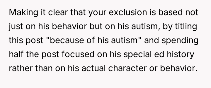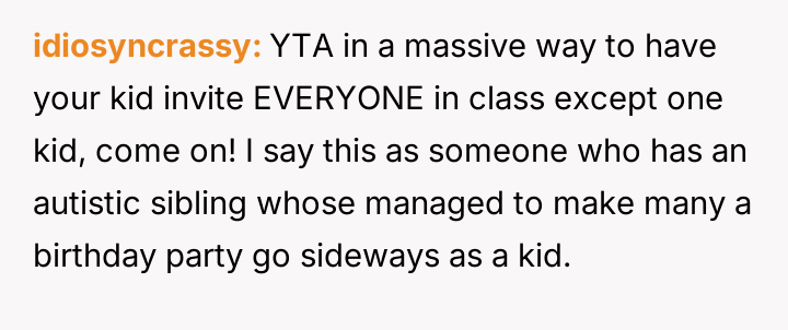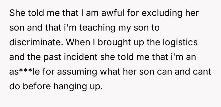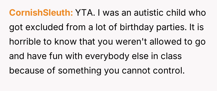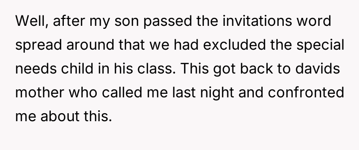 The original poster (OP) is facing significant backlash after choosing not to invite a classmate with special needs to their son's birthday party, citing concerns over potential disruptions in a loud environment and a past incident.