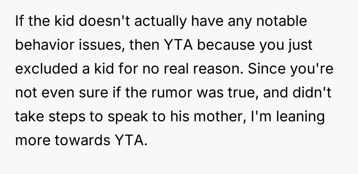 Is the OP justified in prioritizing the party's atmosphere and avoiding potential conflicts based on prior reports, or does the act of excluding a child specifically placed in the class for socialization purposes constitute teaching discrimination, regardless of logistical concerns?