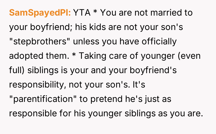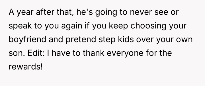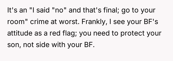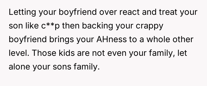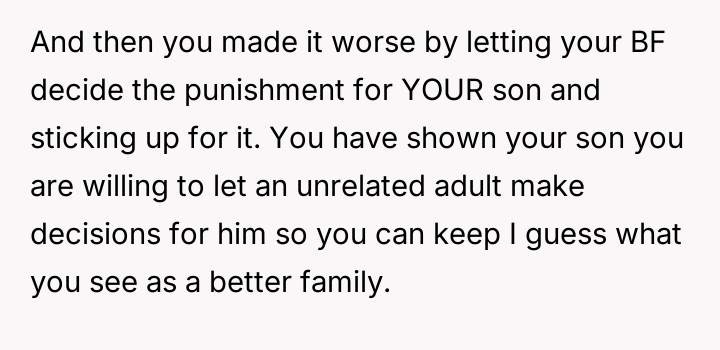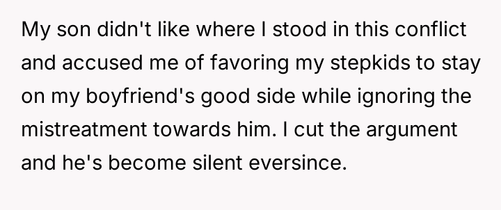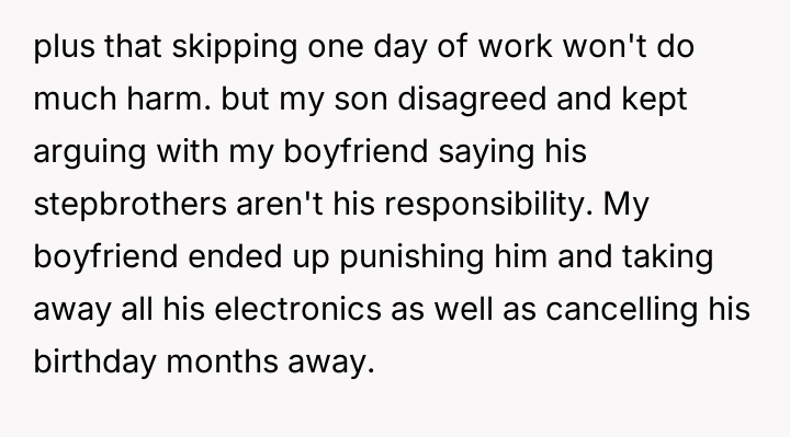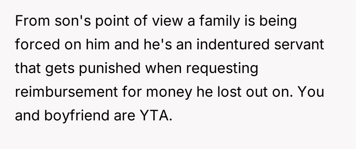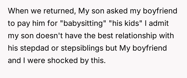 AITA for siding with my boyfriend after he punished my son for asking for money to watch his stepsiblings?
