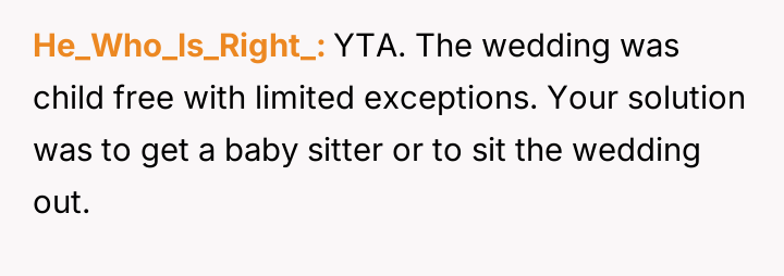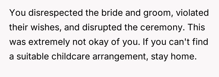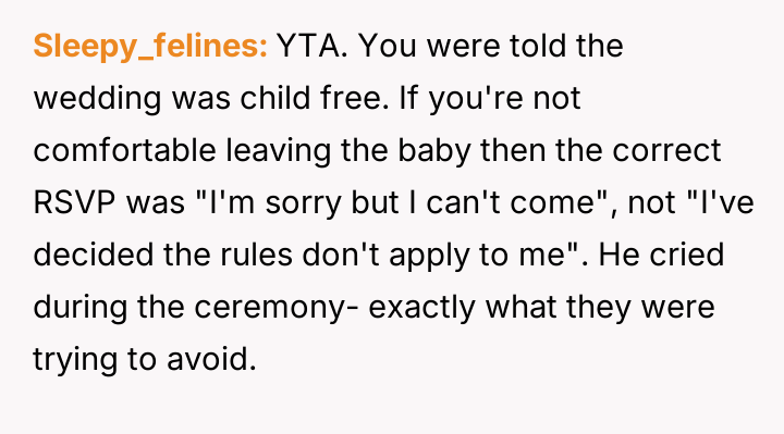 The original poster (OP) faced a difficult choice between adhering to a strict, no-children wedding policy and their personal comfort level regarding childcare for their infant.