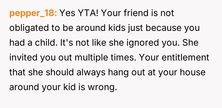 AITA for snapping at my friend who keeps ditching me because I now have a child?