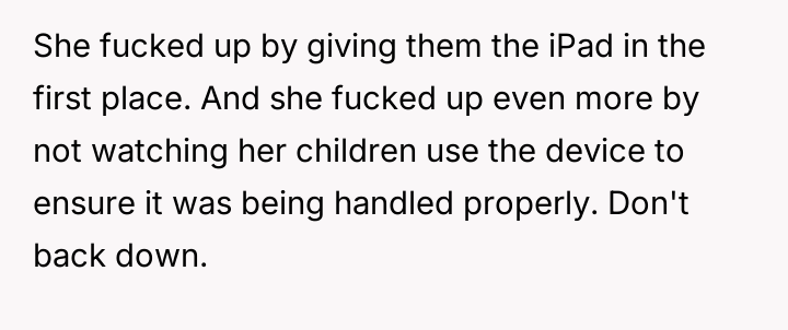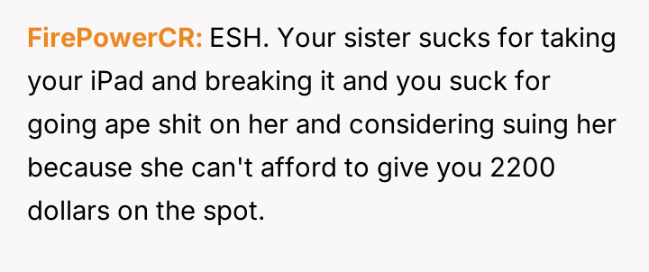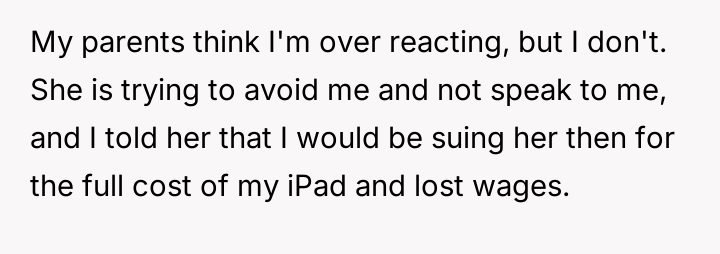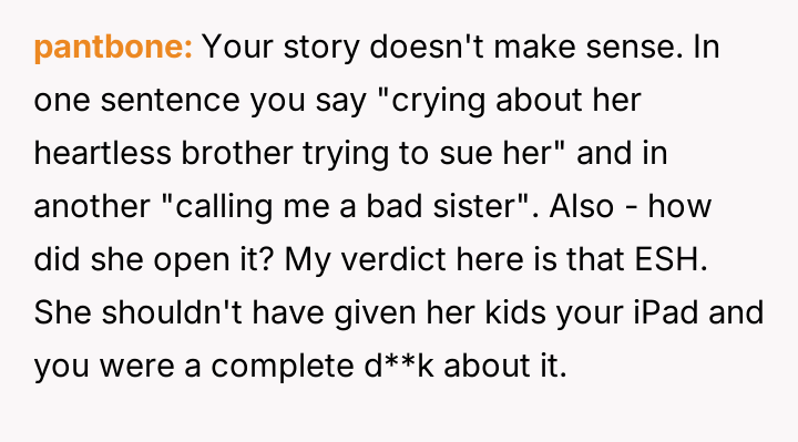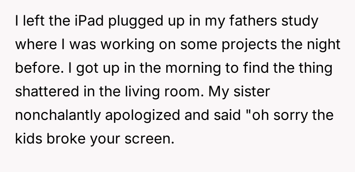 AITA for threatening to sue my sister because her kids broke my iPad?