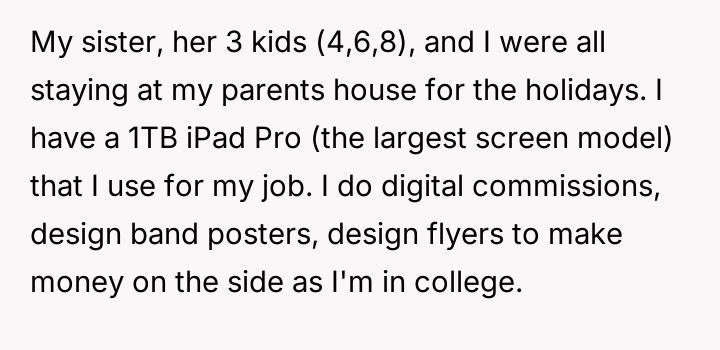 Just days before Christmas, a cherished dream was shattered—literally—when a young artist’s carefully saved investment, a prized iPad Pro, was left broken by her sister’s children.