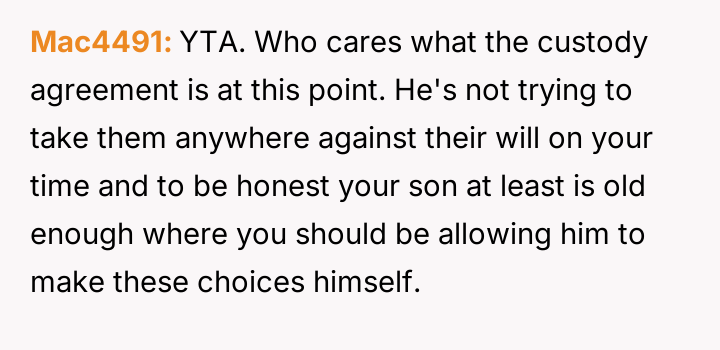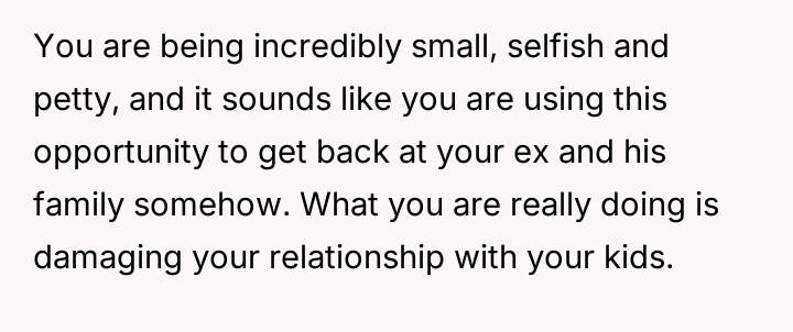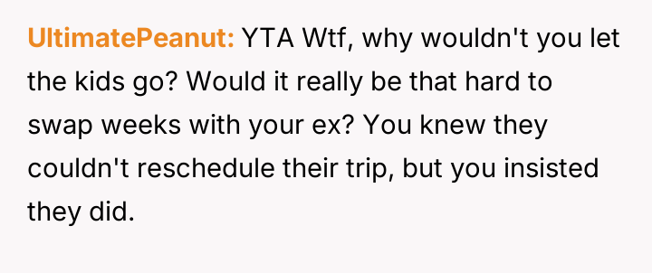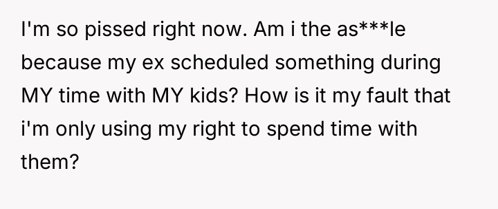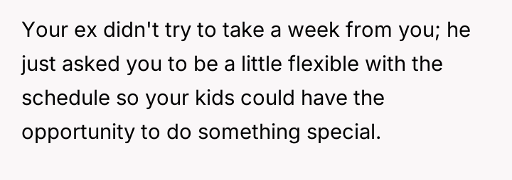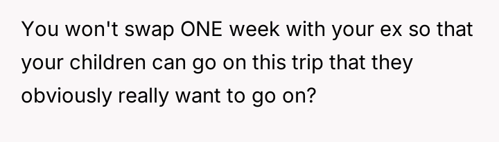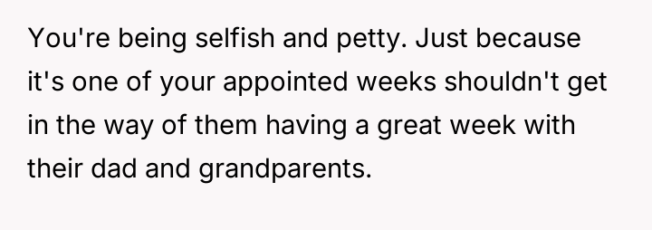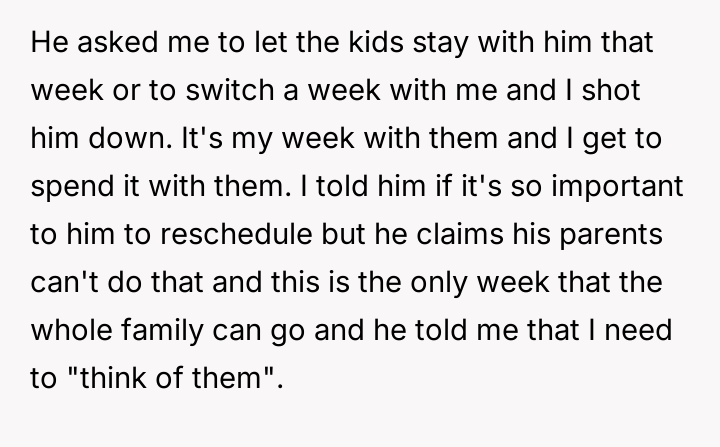 AITA for not letting my kids go on vacation with my ex because it's my time with them.