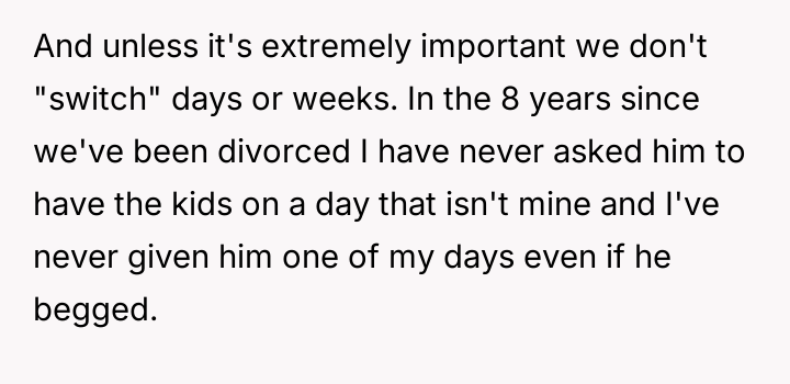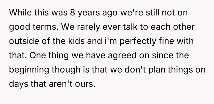 Yet amidst the chaos, a steadfast promise remains unbroken — a pact to honor the sacred days meant solely for their children, even as it threatens to pull their family further apart.